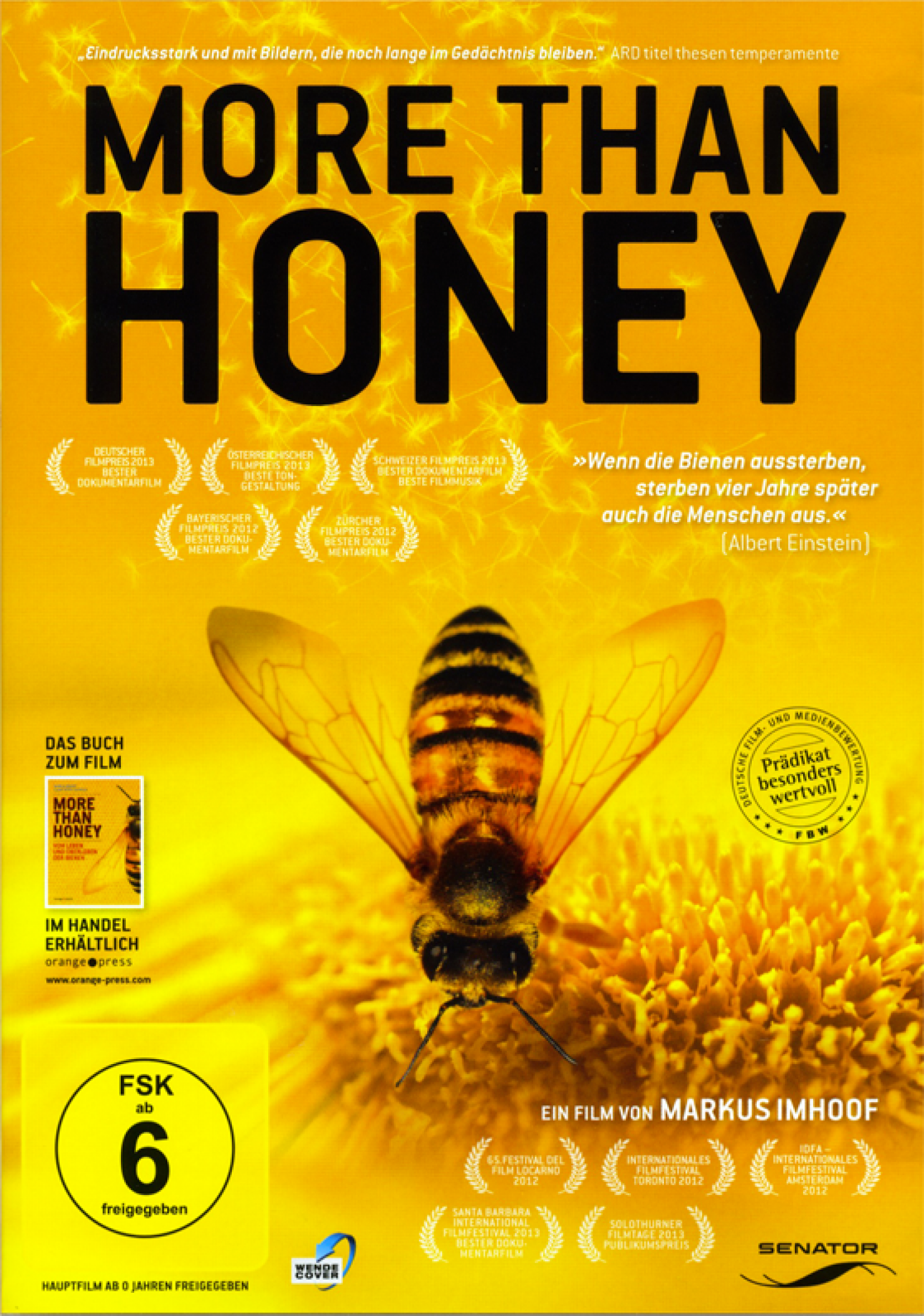 Inhaltsbeschreibung: Eines der wichtigsten Naturwunder unserer Erde schwebt in höchster Gefahr: die Honigbiene. Das fleißigste aller Tiere, das verlässlich von Blüte zu Blüte fliegt, verschwindet langsam. Es ist ein mysteriöses Sterben, das weltweit mit Sorge beobachtet wird. Denn ein Leben ohne die Biene ist undenkbar. Sie ist die große Ernährerin der Menschen. Aber ihr wird heute Großes abverlangt: der weltweite Bedarf an Naturprodukten ruht auf ihren zierlichen Flügeln. Zwischen Pestiziden, Antibiotika, Monokulturen und dem Transport von Plantage zu Plantage scheinen die Königinnen und ihre Arbeiterinnen ihre Kräfte zu verlieren. MORE THAN HONEY entführt uns in das faszinierende Universum der Biene. Regisseur Markus Imhoof verfolgt ihr Schicksal von der eigenen Familienimkerei bis hin zu industrialisierten Honigfarmen und Bienenzüchtern. Mit spektakulären Aufnahmen öffnet er dabei den Blick auf eine Welt jenseits von Blüte und Honig, die man nicht so schnell vergessen wird.