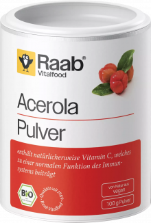Abbildung unterhalb der Bücher: Bio Acerola Pulver - von Raab Vitalfood